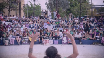 —Vengan a conocer La Movimienta —dice. Algunas mujeres reparten pañuelos verdes. Otras explican qué significa este nuevo movimiento.