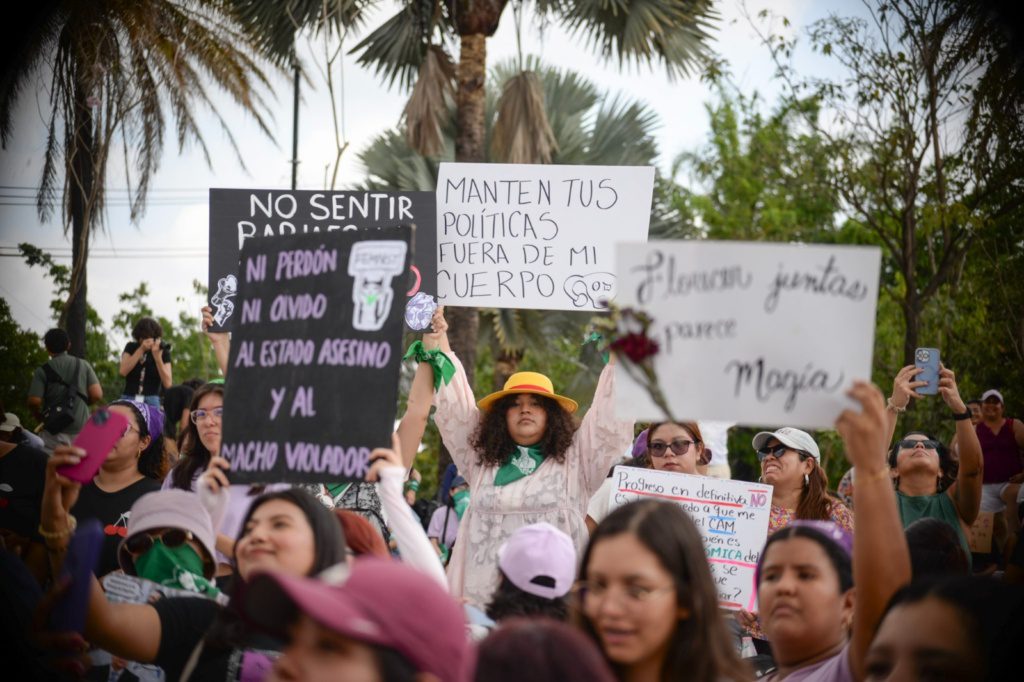 No hubo marea verde, ni multitudes, ni columnas de mujeres y disidencias LGBTIQ+ caminando hacia la Plaza Cívica del Centro Histórico. Esta vez fue distinta: menos gente, otra ruta, más cautela. Pero aún así hubo pancartas, canciones, consignas, batucadas y jóvenes. Muchas jóvenes.